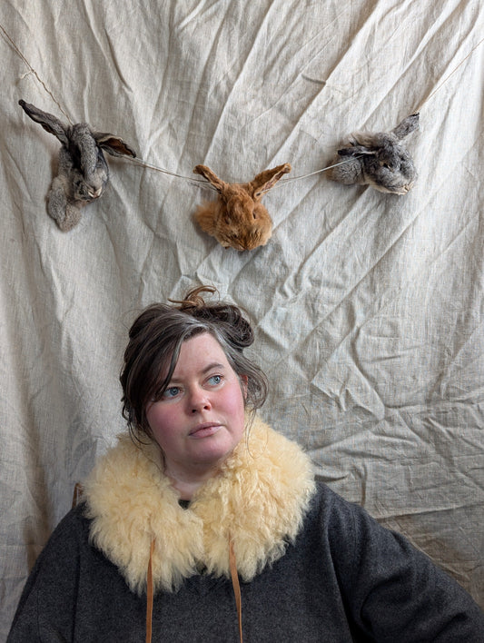 All of my sheepskins and leather offerings are tanned naturally by myself, with bark and tannin extracts and a few other food grade ingredients. I work with farmers, butchers and hunters in the southern Appalachians (mostly in WNC and E TN), to keep these wonderful textiles out of landfills and give thanks to the animals who once wore them. No chrome or synthetic aldehydes, no petrochemicals, no vague overseas origin story - just transparent ingredients, traceable skins and a love for the ruminant.