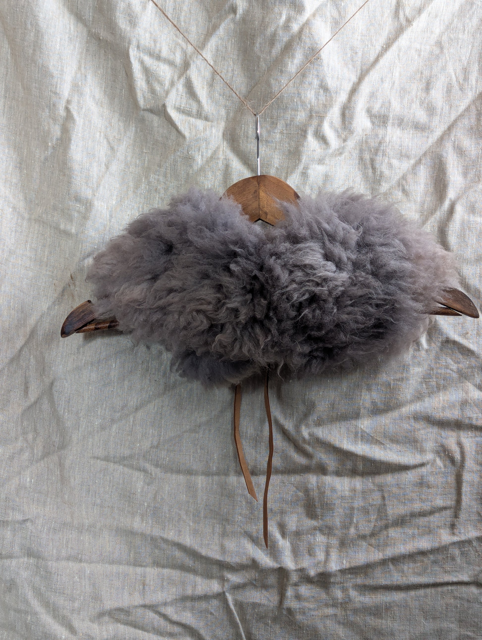 Because the tanning and washing process I use does not involve harsh petroleum-derived solvents, and instead mostly handwork, the wool may contain seeds or small pieces of leaves and other vegetable matter, and it may also retain a faint smell of sheep and bark. Enjoy it! To care for this hide, air it out often. You can handwash with warm water and soap and line dry, or fill your washer and allow to soak. More info on my process, cleaning & care.