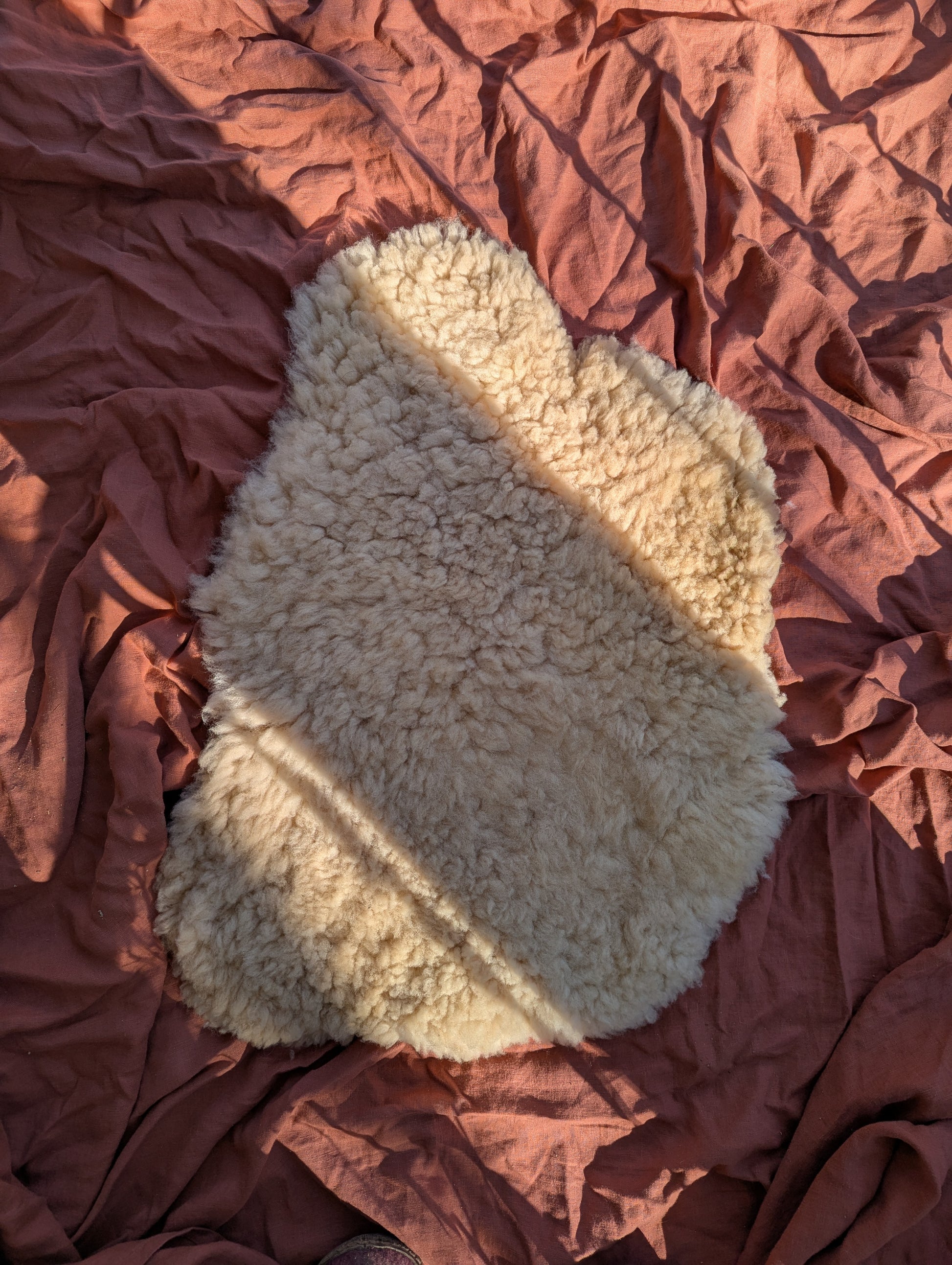 Because the tanning and washing process I use does not involve harsh petroleum-derived solvents, and instead mostly handwork, the wool may contain seeds or small pieces of leaves and other vegetable matter, and it may also retain a faint smell of sheep and bark. Enjoy it! To care for this hide, air it out often, but when needed these are machine washable on a cold/gentle cycle! All sheepskin orders come with a care card explaining how to care for your sheepskin so it can be passed down for generations.