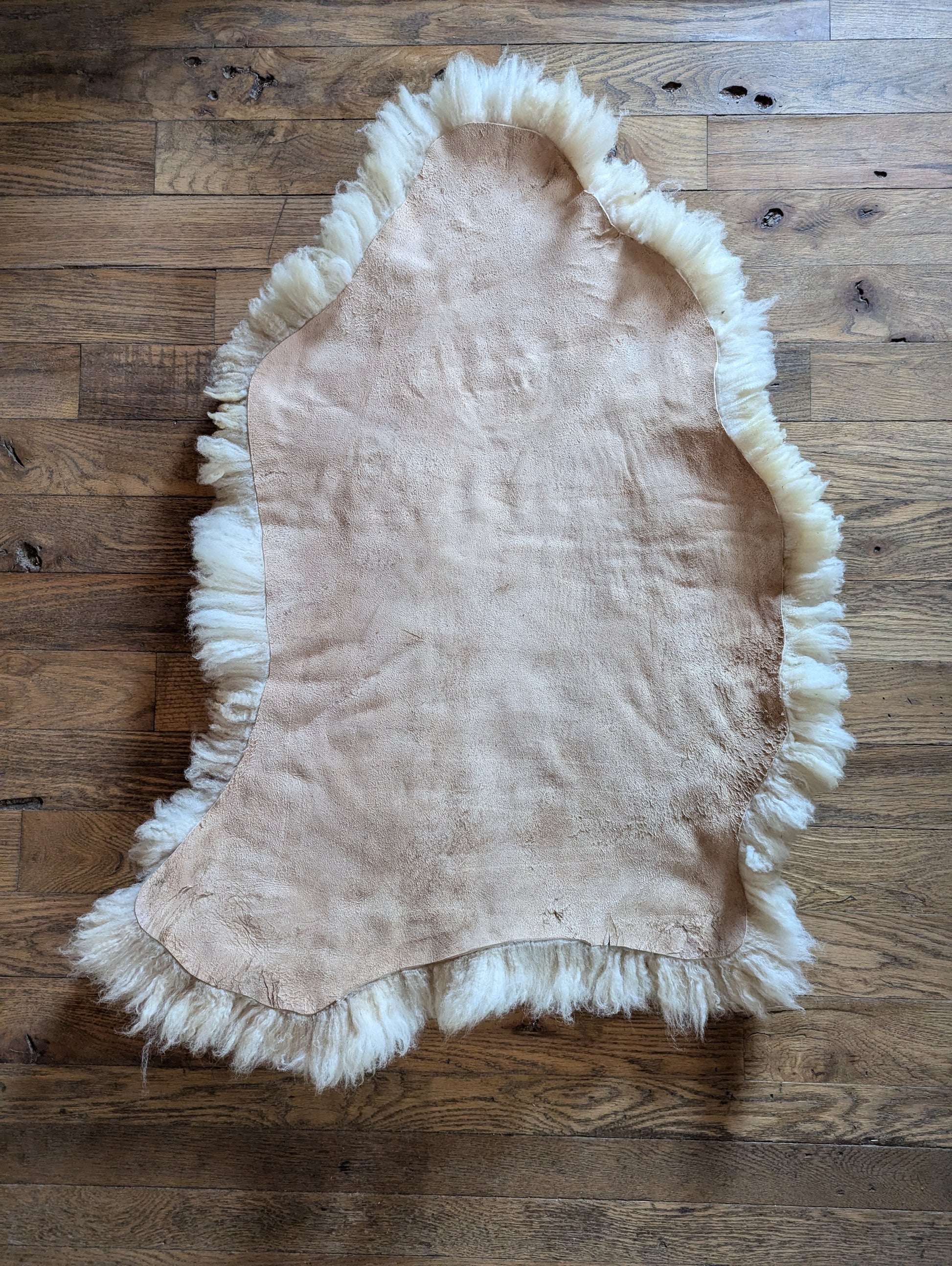 This sheepskin was tanned naturally, from a sheep raised by Blackthorn Farm & Kitchen in Sandy Mush, NC.