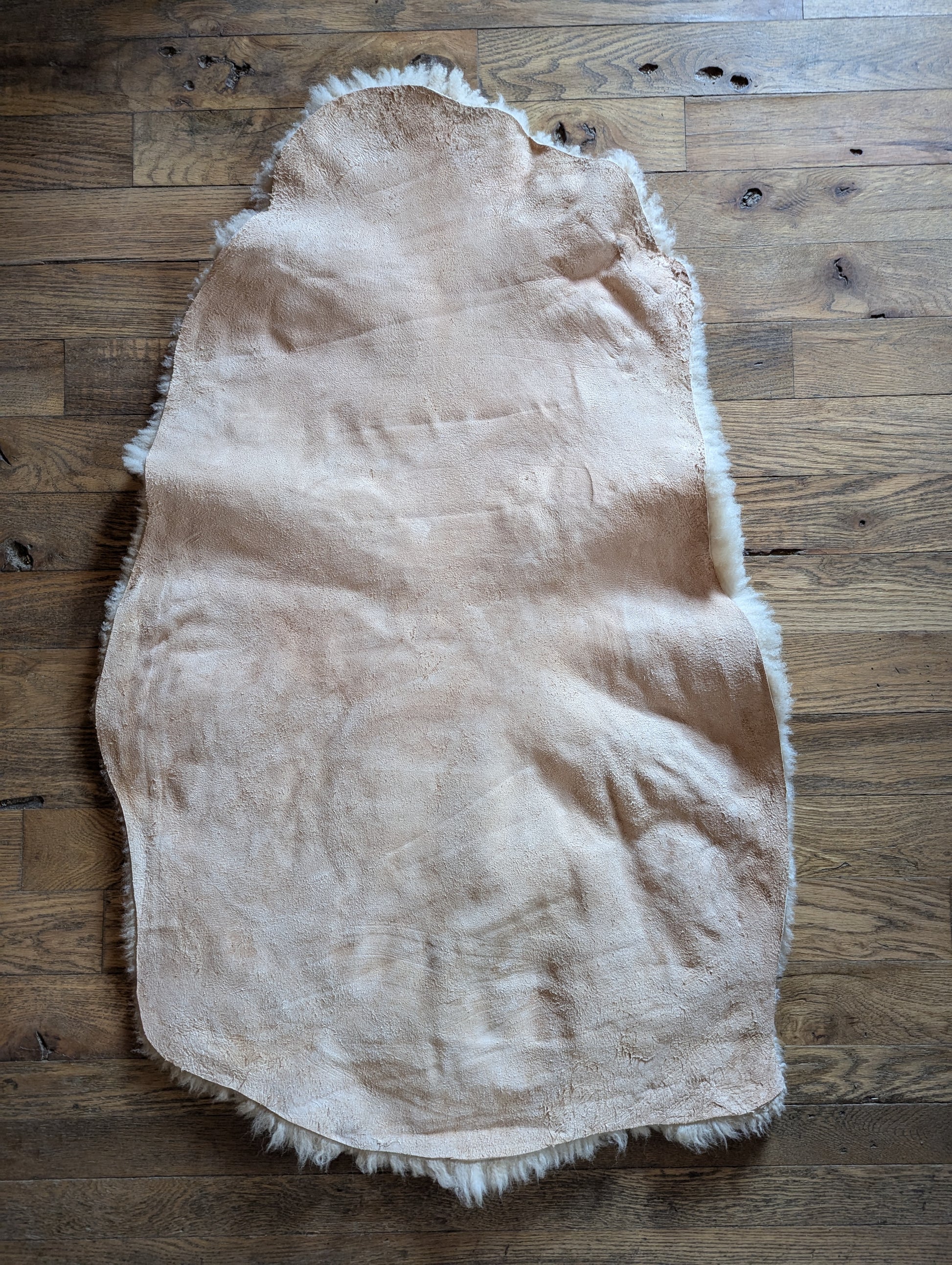 This sheepskin was tanned naturally and salvaged from a butcher in Rutherfordton, NC.