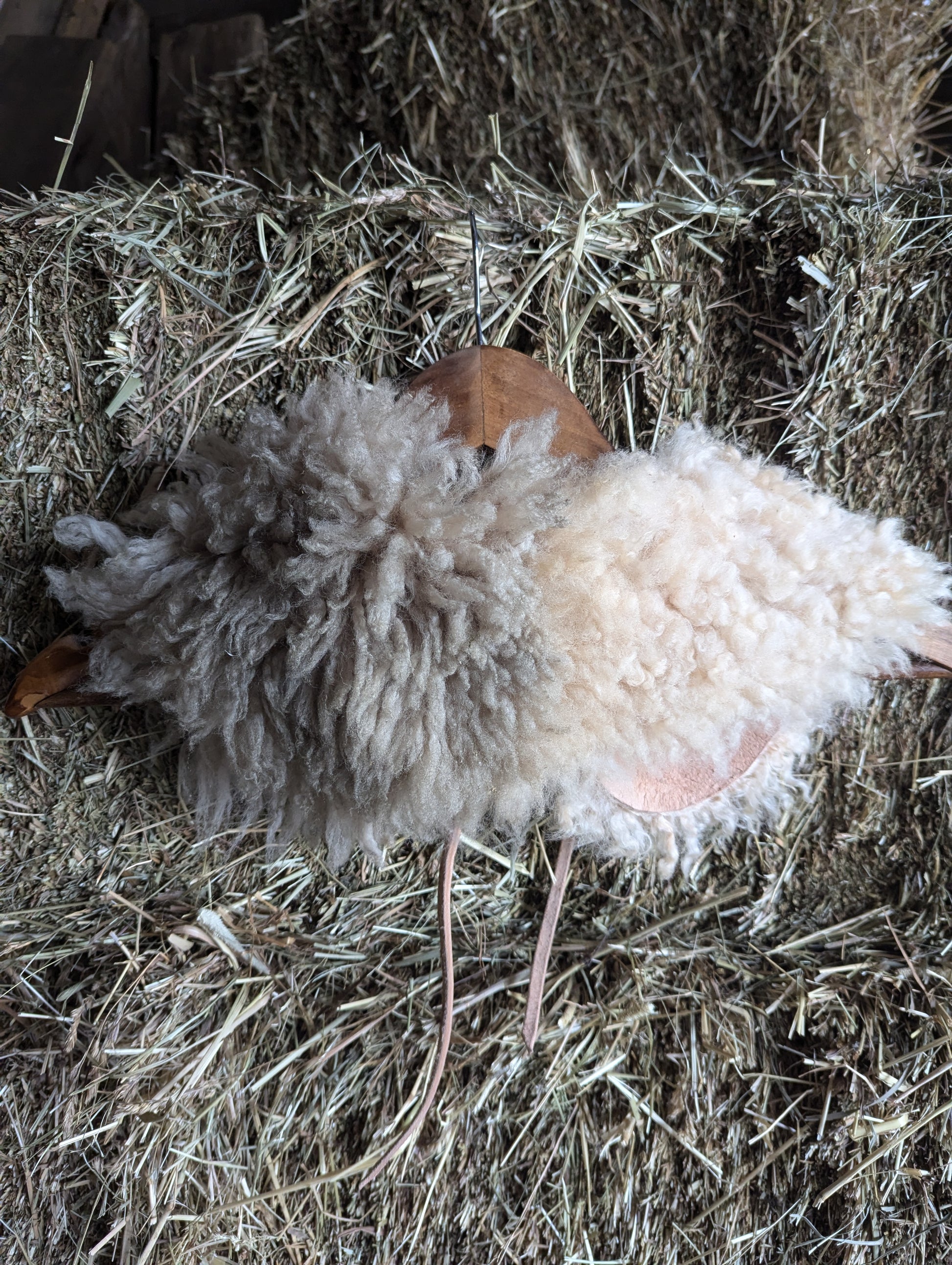 Because the tanning and washing process I use does not involve harsh petroleum-derived solvents, and instead mostly handwork, the wool may contain seeds or small pieces of leaves and other vegetable matter, and it may also retain a faint smell of sheep and bark. Enjoy it! To care for this hide, air it out often. You can handwash with warm water and soap and line dry, or fill your washer and allow to soak. More info on my process, cleaning & care.